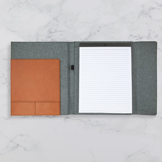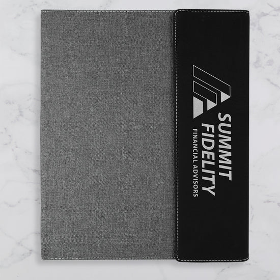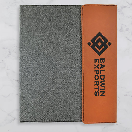 Stay stylishly organized with our custom canvas and vegan leatherette portfolios! Each personalized portfolio is laser-engraved just the way you like!