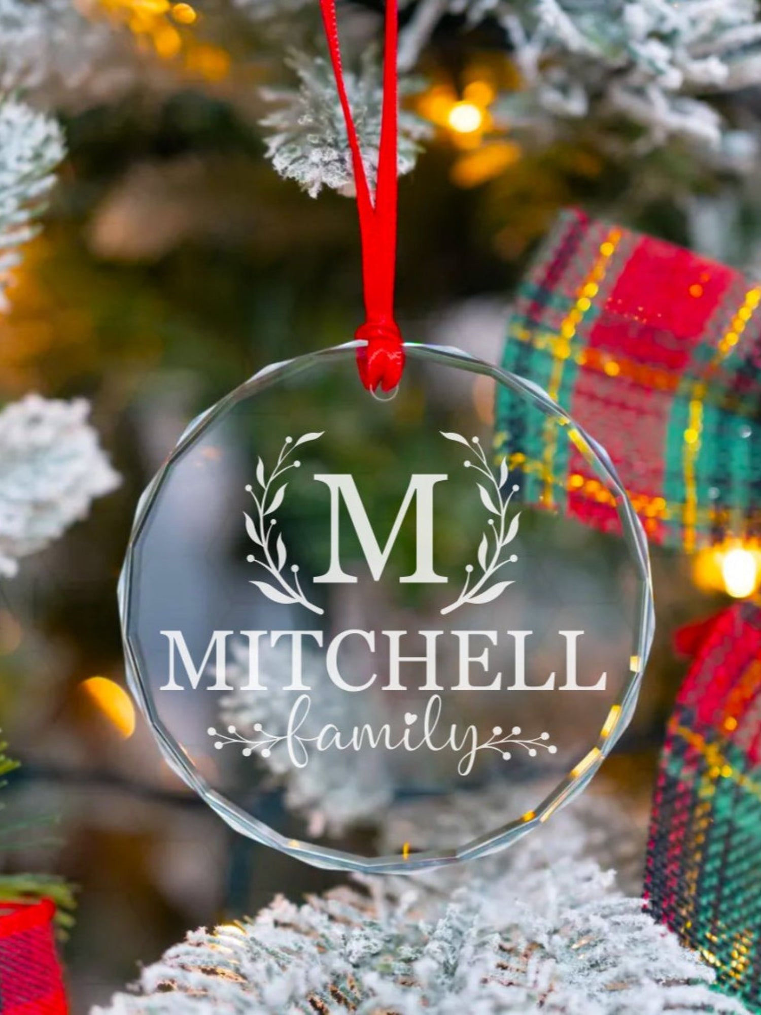 Celebrate the warmth and joy of family this holiday season with our beautifully crafted personalized Family Christmas Ornament. Perfectly sized at 3x3 inches, this elegant glass piece is personalized with your family name, thus, creating a cherished keepsake you’ll look forward to displaying every year.