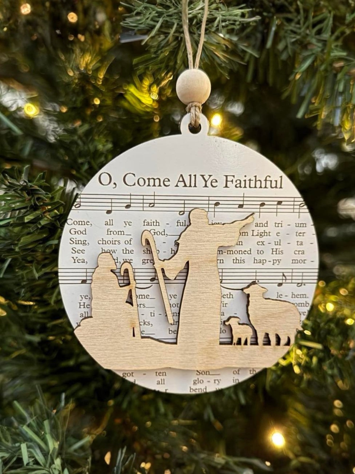 Celebrate the true meaning of Christmas with our Music Sheet Nativity Ornament. This timeless keepsake features beloved carols showcased on sheet music, making it a perfect addition to your holiday decor. A must-have for any music lover, it's a beautiful reminder of the holiday spirit.