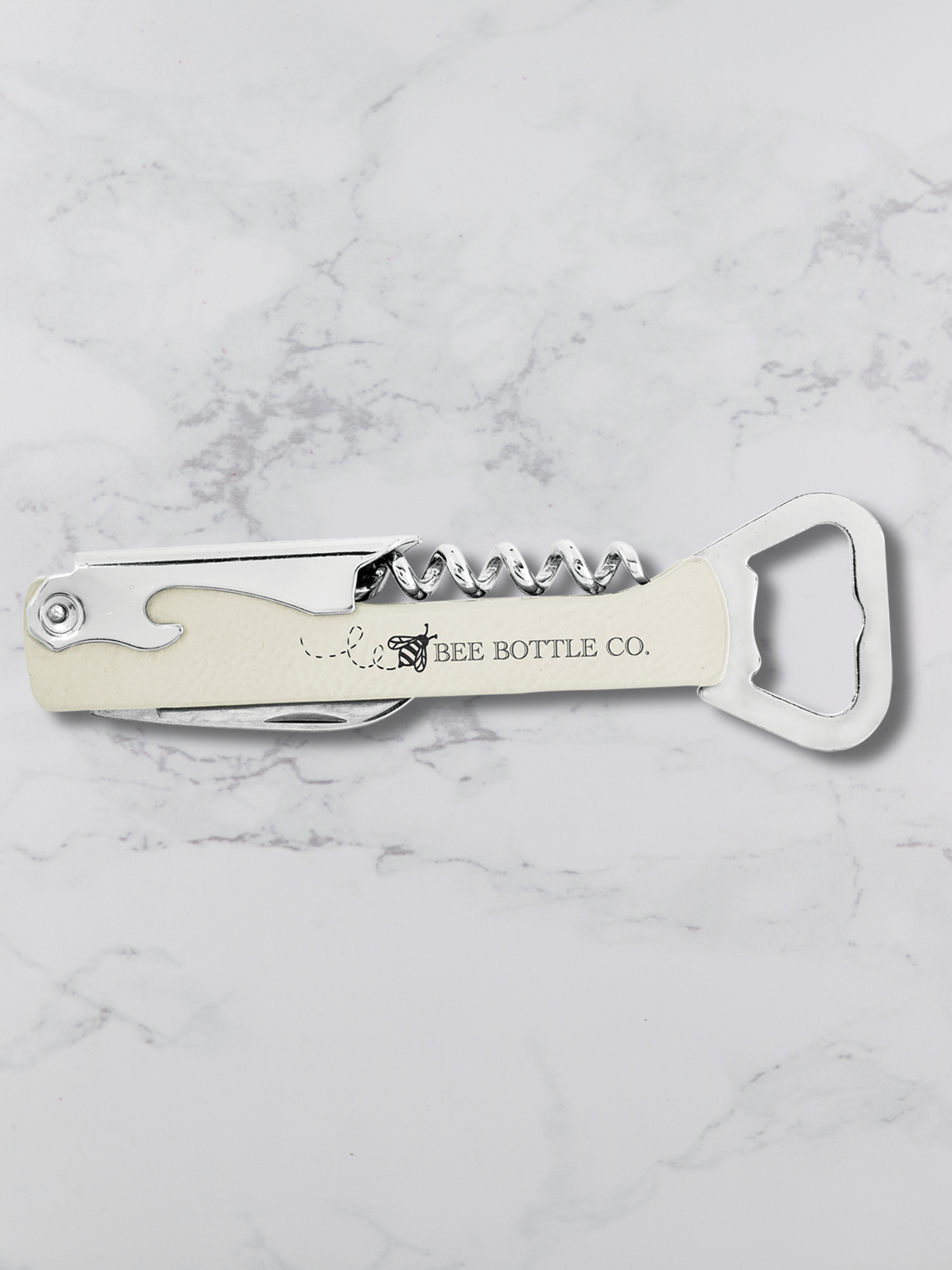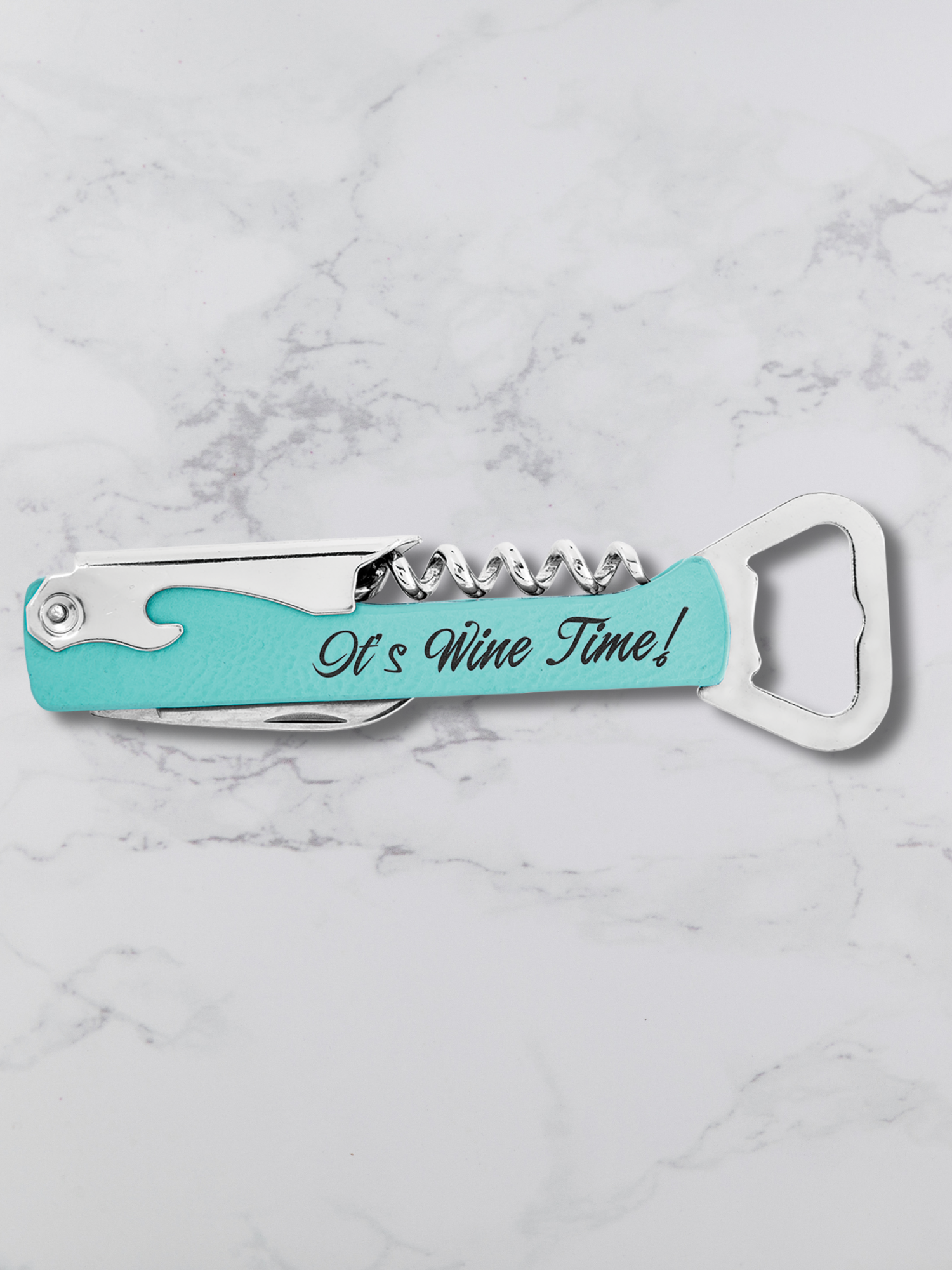 The wood multi tool has many functions for that special person in your life. It has a bottle opener, corkscrew, and a small knife. An essential gift for the wedding party. Open wine, beer, or your favorite beverage with a all in one tool. Laserable Leatherette offers the look and feel of genuine leather at a fraction of the price. This richly textured, synthetic material is water resistant, easy to clean and durable enough for the rigors of daily use. The high quality workmanship of each leatherette piece is sure to impress every recipient with its elegant individuality.